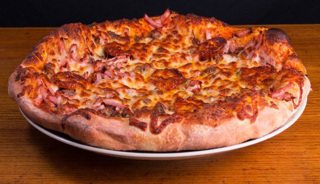 Ost, tomatsós, oksakjøt, pepperoni, skinka