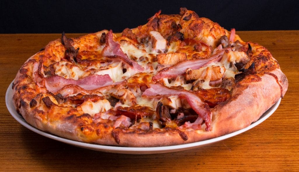 Ost, tomatsós, oksakjøt, skinka, pepperoni, shawarma, kylling, bacon